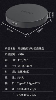 联想Y910磁吸移动固态硬盘正式上市,传输速度达2000MB/s