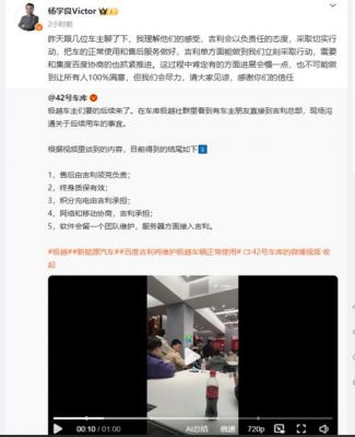 街道部门也参与到了此次维权事件的协调中。他们要求吉利方切实履行会议上达成的承诺,并表示若周五未能按时兑现,街道将不再干预此事。这一话语是对吉利的一种压力,同时也反映了部门对企业责任的重视。如果吉利无法按约定时间给予明确答复,车主们可能会采取进一步的行动来维护自己的权益。
