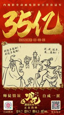 近日,随着春节假期的到来,中国电影市场迎来了又一波观影热潮。根据最新数据统计,截至2月3日13时15分,《哪吒之魔童闹海》在票房上实现了新的里程碑,累计票房已突破35.62亿元,成功超越了此前的春节档冠军《唐人街探案3》,后者的票房为35.61亿元。这一成绩让《哪吒之魔童闹海》不仅成为了春节档的票房冠军,更在中国影史上留下了浓厚的一笔。
