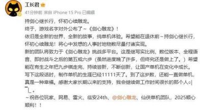 张毅君被誉为“古剑奇谭之父”,他在中国游戏界的地位毋庸置疑,而这次他带来的新作《剑心雕龙》则更是让人充满期待。根据官方的消息,这款游戏正在积极进行多的对接工作,预计将以多种形式呈现于广大玩家面前。这样的决定,令众多玩家欣喜,而游戏的发售也在各大社交媒体引发了广泛的讨论和猜测。