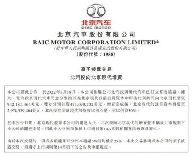 近日,北京汽车在港交所宣布与现代汽车达成注资协议,双方将共同推进北京现代的发展及新车型的发布。这标志着北京现代在合资经营的基础上,进入了一个新的发展阶段,并有望在未来的国际市场上增添更多的产品线。